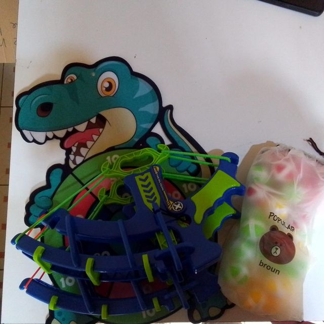 Let your kids compete by sticking the ball from the bow on the dinosaur for points. Great for indoors play.